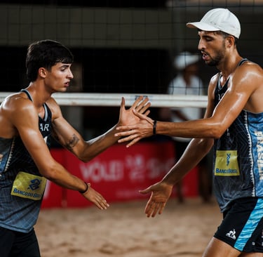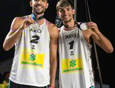 We're Nicolás Capogrosso and Tomás Capogrosso, and we bring our Argentine spirit to beach volleyball courts worldwide. We started on our local beaches and have grown to play on big international stages. Our journey shows our hard work, skills, and the friendly Argentine charm we love to share.
